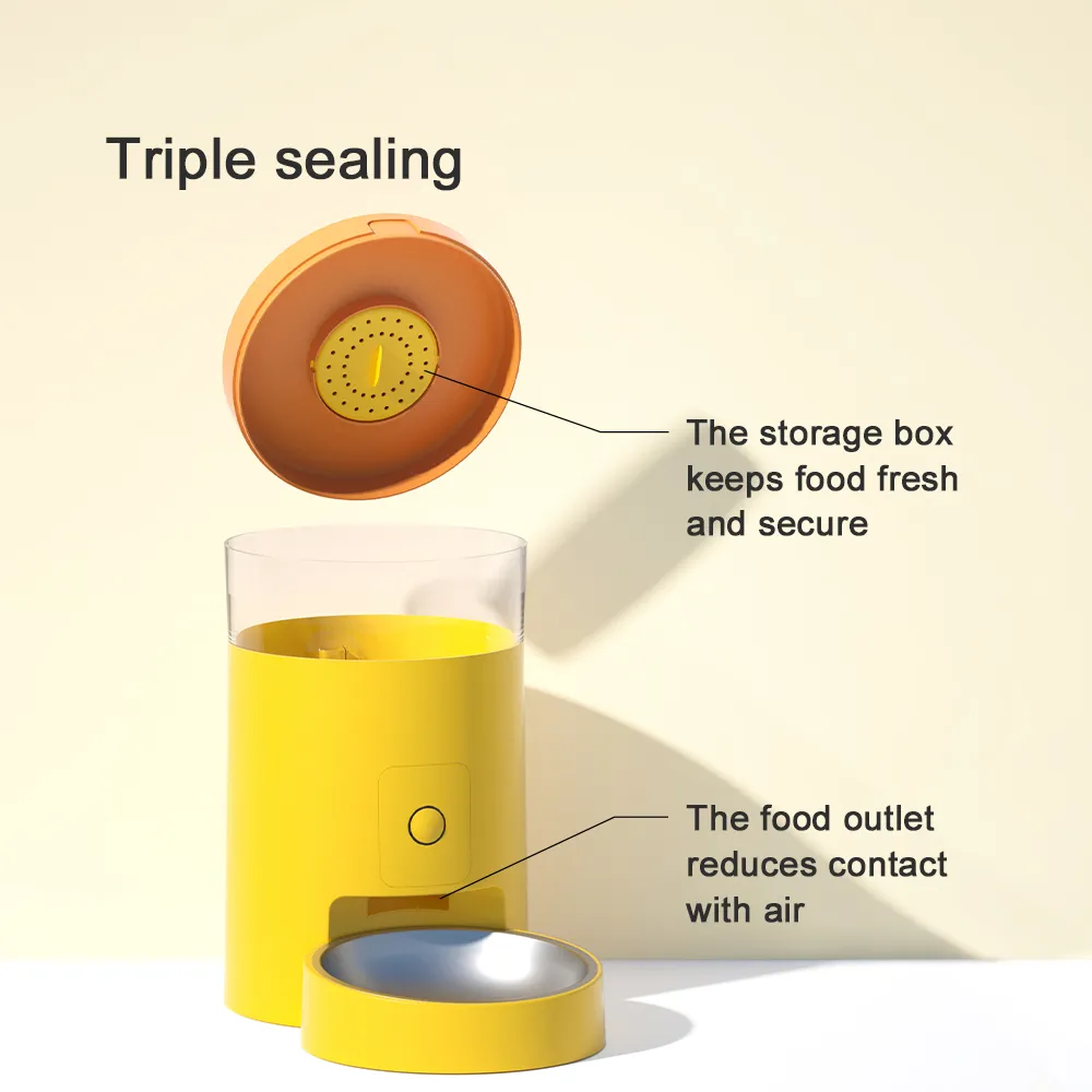 The top cover forms a kind of seal to keep the coarse ground food fresh, so that your pet can receive the food it needs. Removable food container, plastic shell, stainless steel bowls and ceramic bowls easy to install and clean.