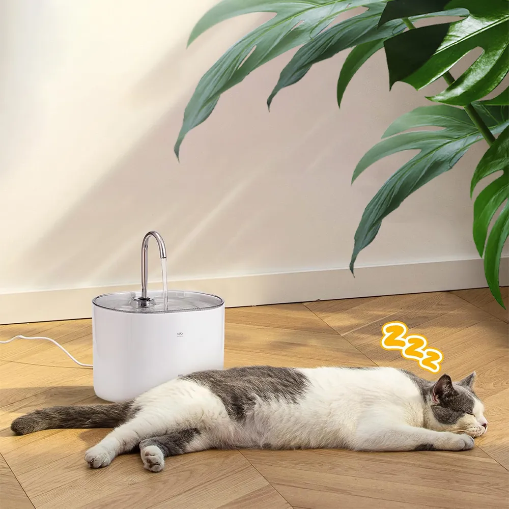 Cat water fountain integrates the following core features - faucet spout to attract cats to drink, ultra-quiet and anti-dry burn pump to provide a comfortable experience, and multiple filtration systems to make every sip of water clean and fresh for cats.