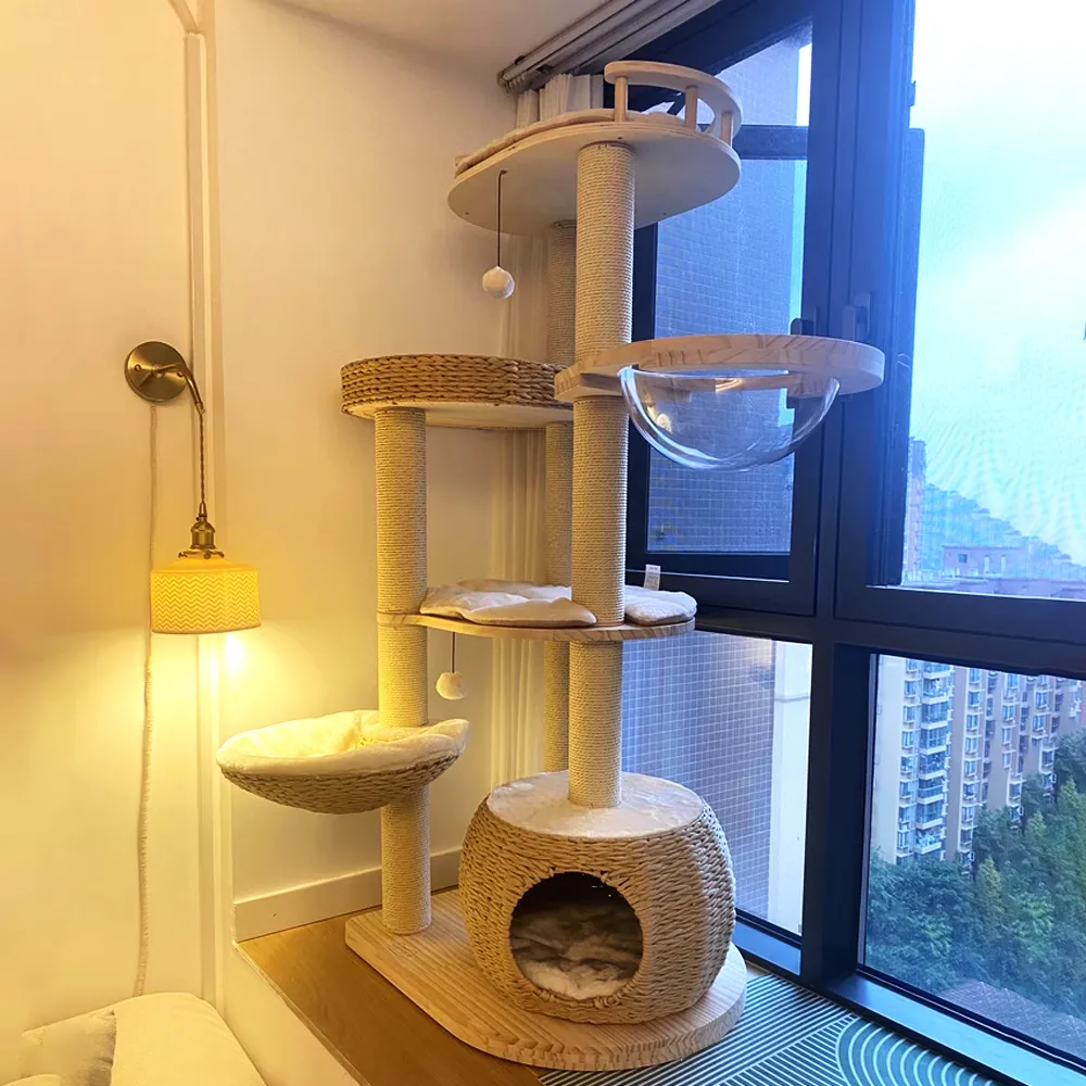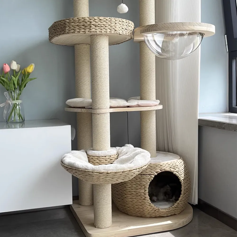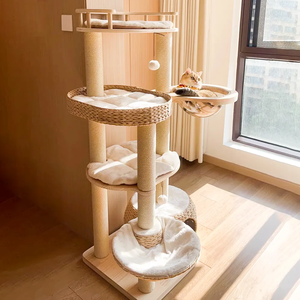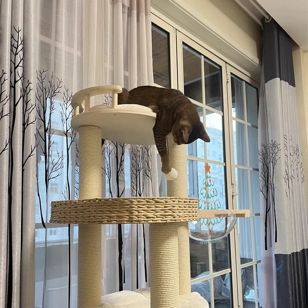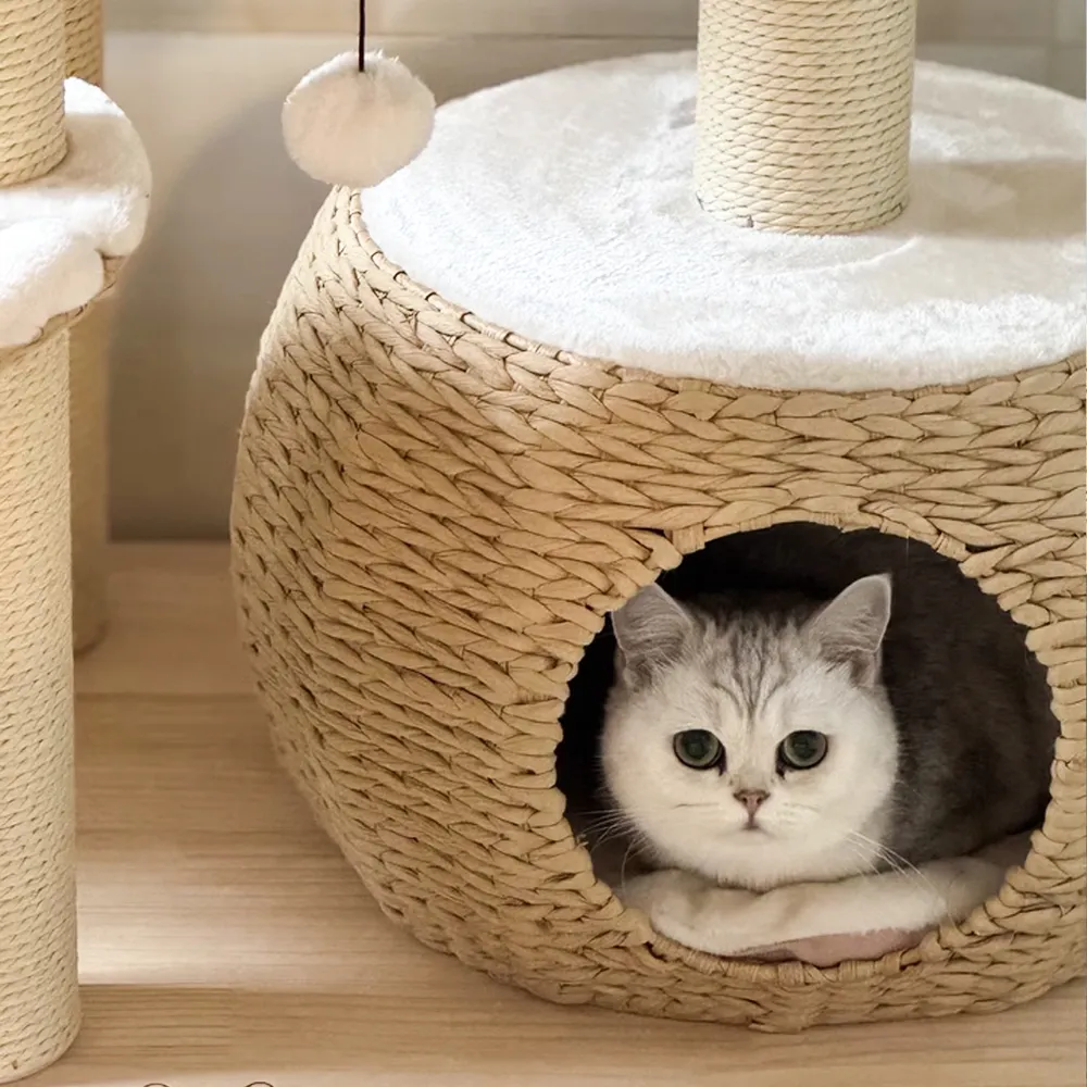 The natural sisal is more durable and suitable for cats to sharpen their paws. Cat tree combines style and functionality.