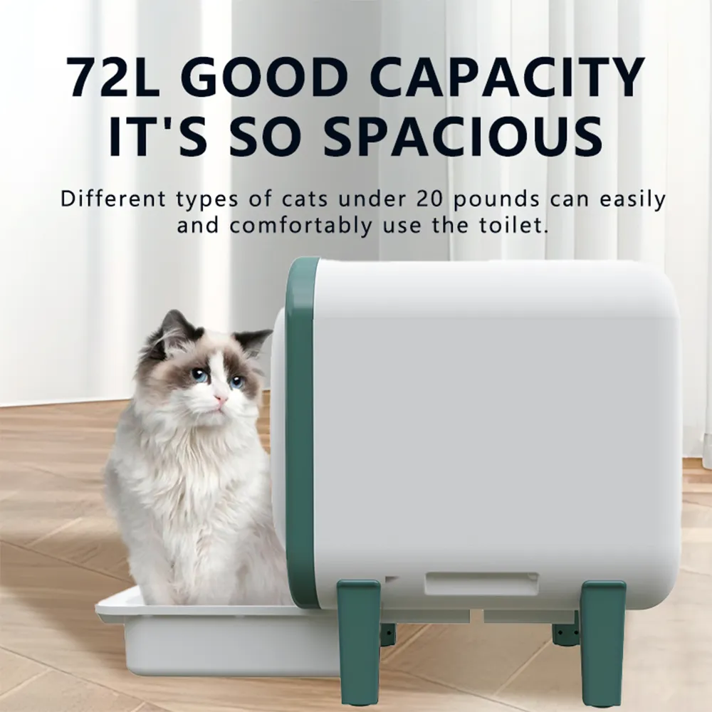 With a spacious 72L internal capacity, this smart litter box is ideal for both single and multi-cat families. It offers plenty of room for cats. The 9-liter waste bin can last up to 10 days, making it an excellent choice for long trips.