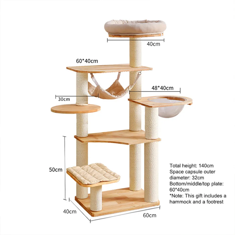High perch, steps, and scratch posts could save your furniture and curtains! Cat-shaped door condo and hammock allow kittens to rest after exercise.