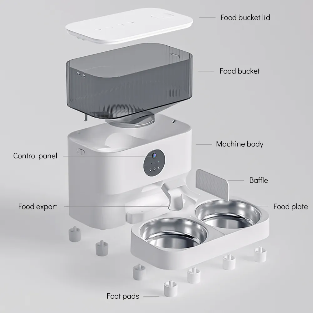 The automatic cat feeder (BPA-Free) has a removable food tank and stainless steel bowl. This provides easy cleaning of the food tank and stainless steel bowl ( Dishwasher Safe ), as well as a healthy and hygienic feeding environment. Our auto cat feeder not only focus on how to reduce the feeding workload of pet owners, but also care about the hygiene of pets in feeding.