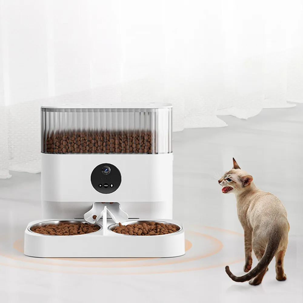 Automatic cat feeder for multiple cats provides two stainless steel bowls, perfect for feeding two cats at once; ensures organized and easy mealtime management
