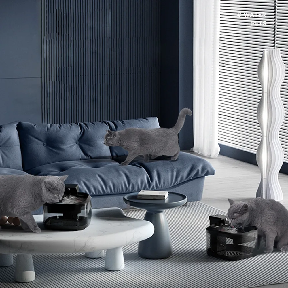 The silent water pump and multi-layer wall flow structure are used to reduce the operating noise of the water dispenser and guide the water flow to form a silencer system. Our cat fountain is equipped with a brand new water pump design, maintaining absolute silent operation. When there is enough water, the pump can only run 25 dB. Even if the water level is very low, it can run quietly, creating a quiet living environment for pets and owners.